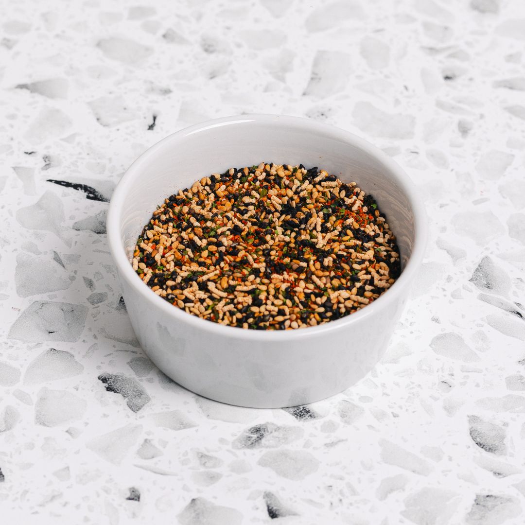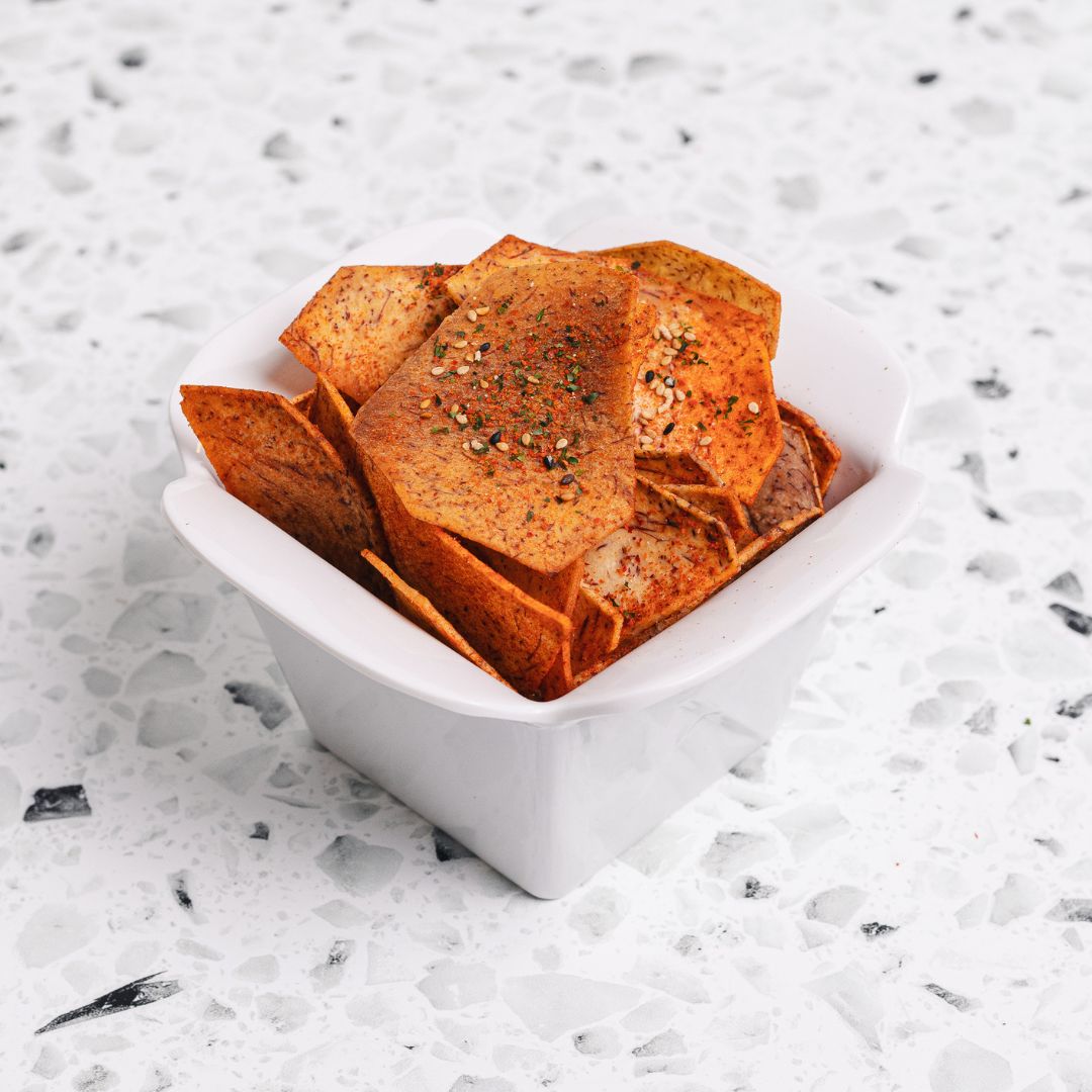 Taro chips dusted with Spicy Furikake. Pair with Avocado Smash.